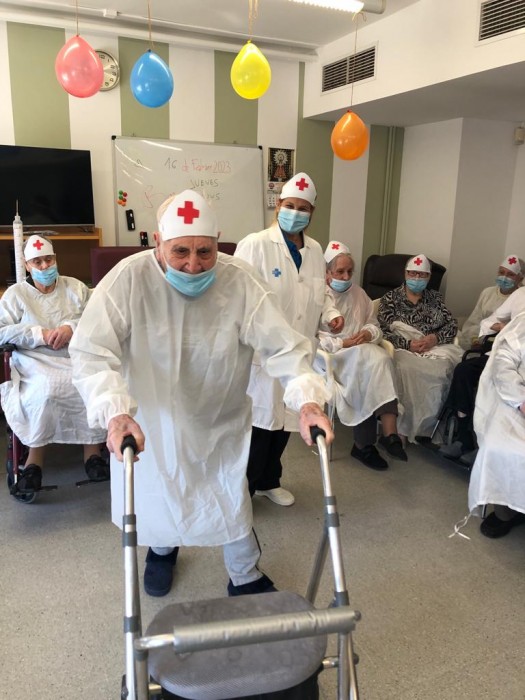 Ahir divendres 16 de febrer varem celebrar el Carnestoltes a la residència. Vem fer un ball de disfresses amb musica, dinàmiques i vermut.