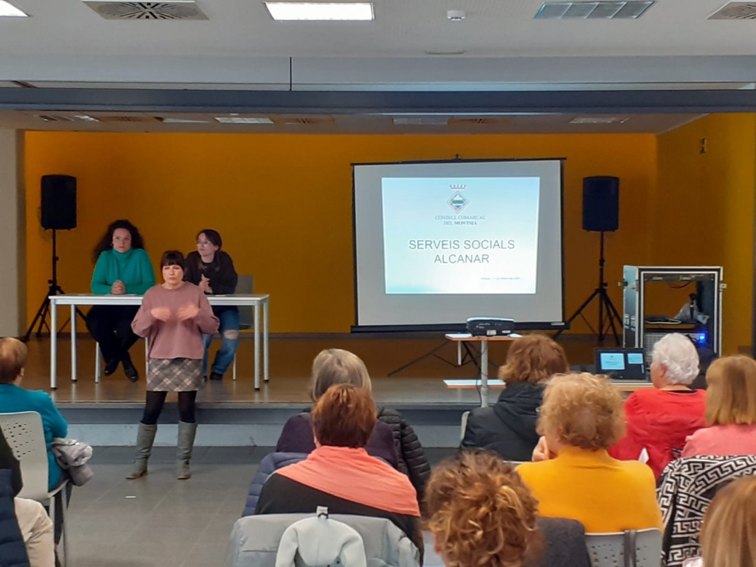 La setmana passada Maria, la nostra Treballadora Social, va formar part d'una xerrada sobre la cartera de serveis i els recursos per a la gent gran a Alcanar.