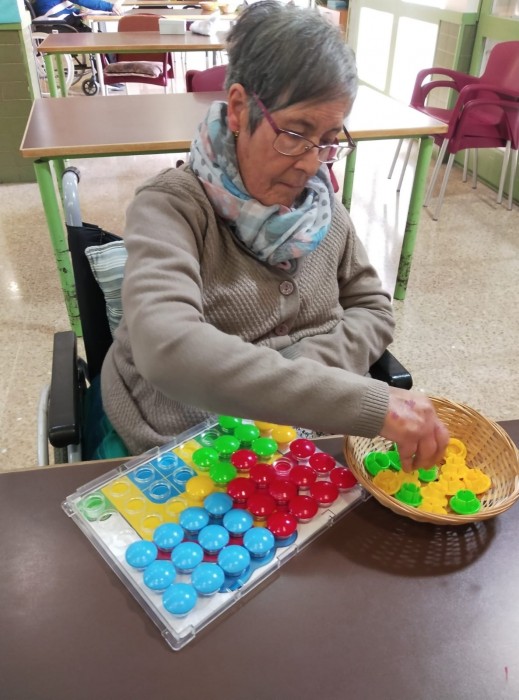 Com cada dia, els usuaris de Parc Serentill fan exercici després d'esmorzar. És una de les activitats que més agraden i que més necessiten. Després, alguns treballen la concentració i la motricitat fina amb diferents materials.