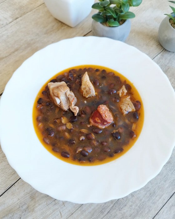 FEIJOADA, que és un guisat amb fesols negres i carn de porc.