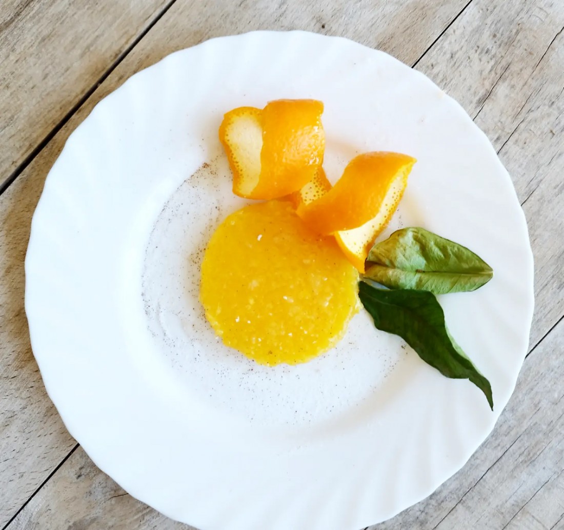 Avui, de postre, taronja texturitzada a l'aroma de canella. La "normalitat" més aproximada per a totes les persones que tenen dificultats de deglució.