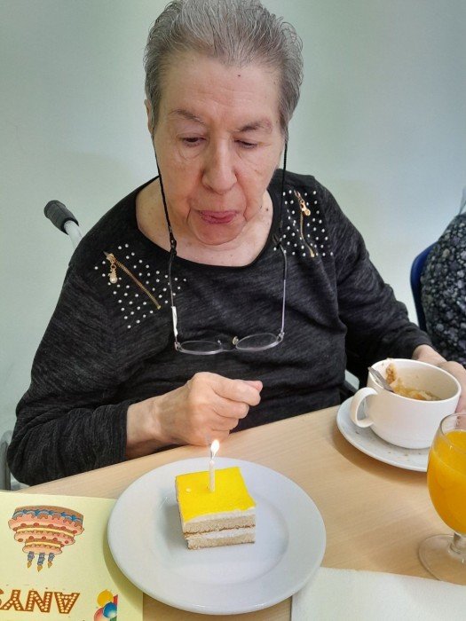 Avui hem celebrat l'aniversari de la Sra Remedios I l'hem felicitat cantant la versió italiana de "cumpleaños feliz" per a recordar a la seva família. Tanti auguri Remedios!