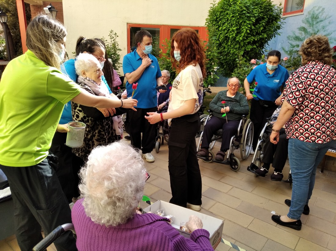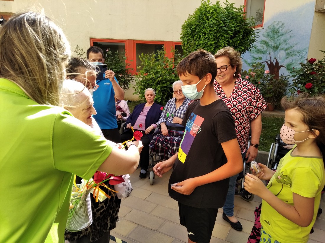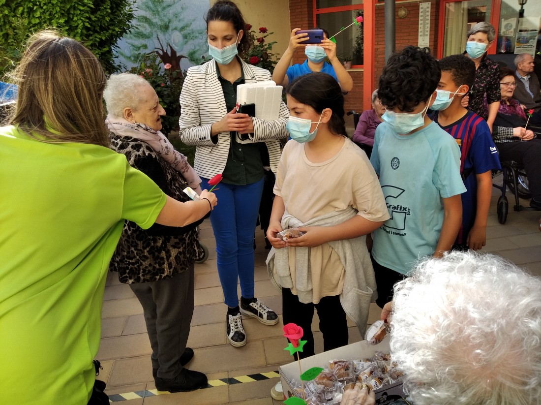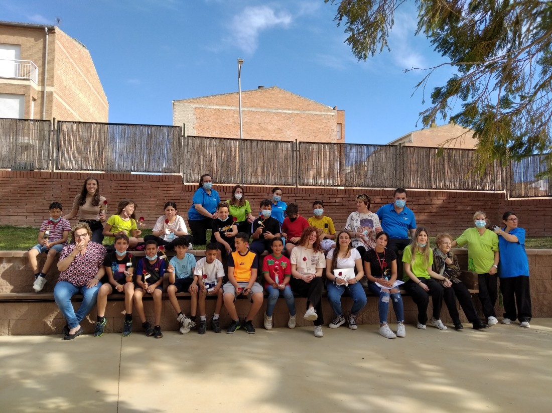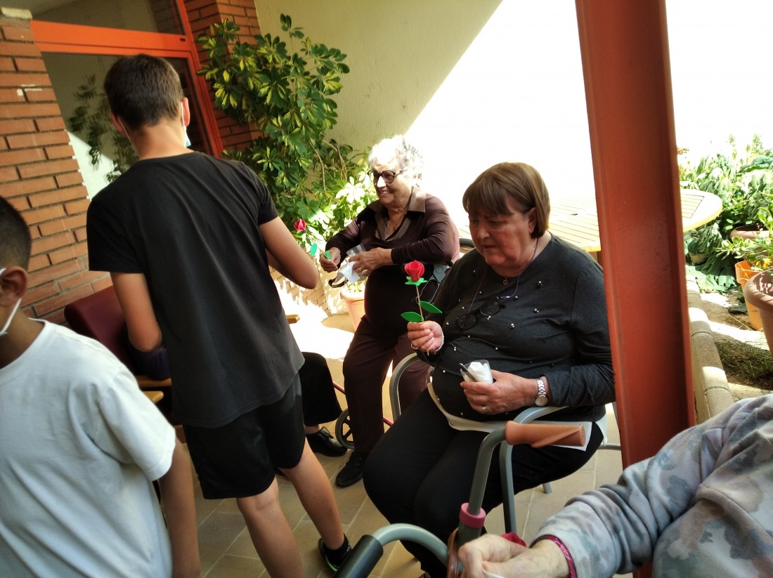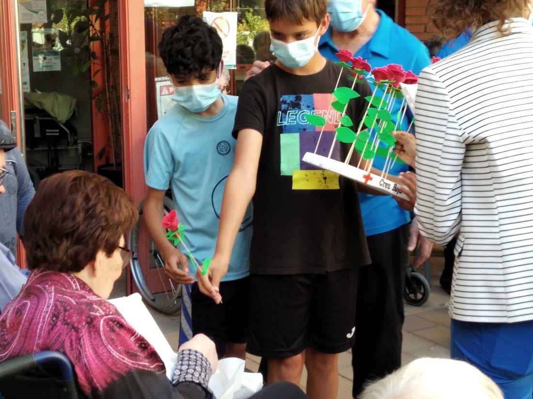 Ahir a la tarda, vam tenir la visita dels nens i nenes que reben activitats extraescolars a la Creu Roja. Vam posar en marxa el projecte "Una Rosa, Una Abraçada" i es que va ser una tarda preciosa...