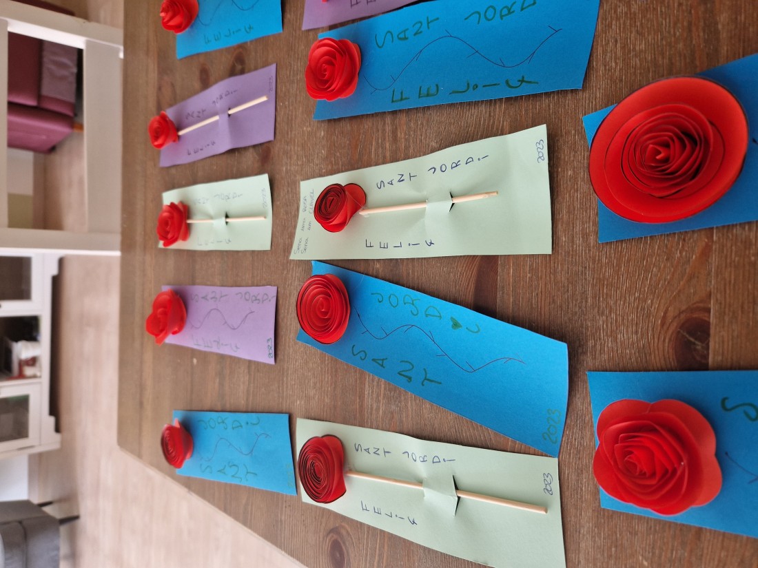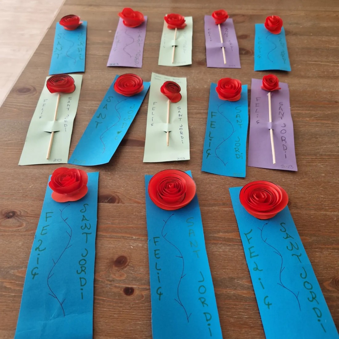 Avui repartim les roses de Sant Jordi entre totes les companyes. I ens les prenem cap a casa.