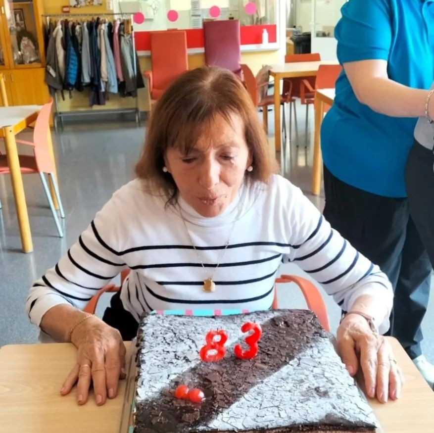 Hoy cumple años, Isabel. Que 83 años tan bien cumplidos! Una mujer guapa por fuera y por dentro Gracias por compartir este momento con nosotros y traer cada día la alegría al centro.
