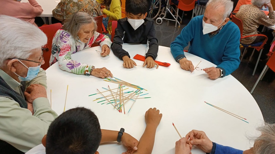 Avui enlloc de treballar l'hort, els alumnes de 5è han vingut amb jocs de taula per passar una bona estona al matí