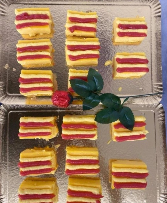 Sant Jordi és el dia on els llibres i les roses són els protagonistes. També els pastissos guanyen terreny... com el que vam menjar al centre! Tenim versió basal i versió texturitzada pels usuaris amb disfàgia. Moltes gràcies a l'equip de cuina!