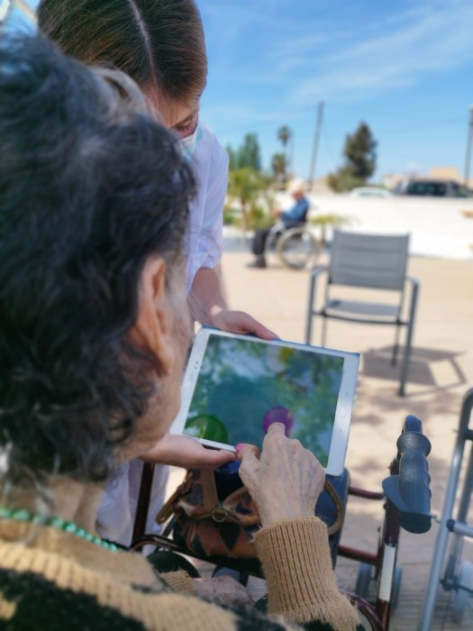 Activitats matinals d'estimulació cognitiva, estimulació sensorial amb noves tecnologies, conversa, passeig i bon temps.