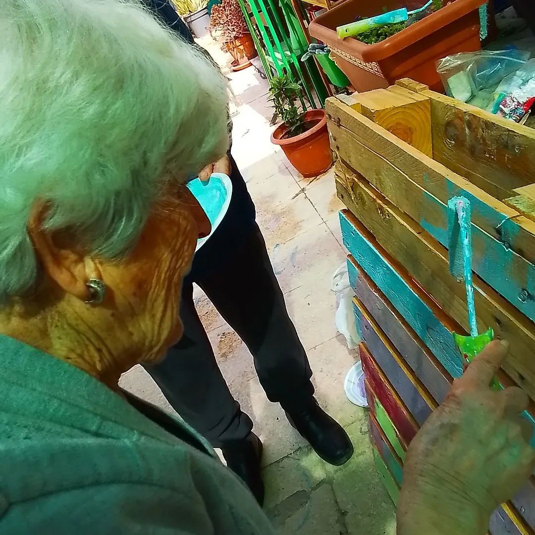 Desarrollando la creatividad en el huerto urbano. preparando decoración paredes.