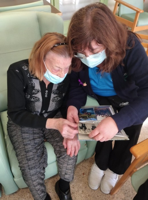 La senyora Generosa comparteix amb els seus companys fotografies significatives de la seva història de vida.Ens explica les seves vivències i anècdotes. Ha sigut molt interessant.