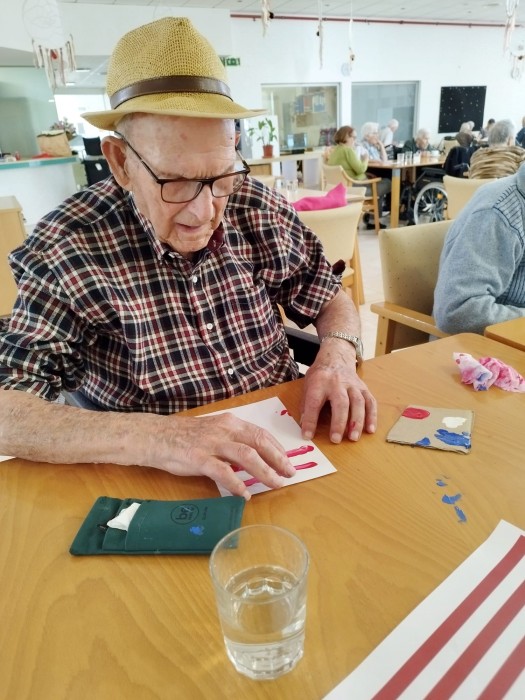 En el taller de manualitats realitzem la bandera del país. A través d'aquesta activitat treballem la percepció havent de plasmar al paper tal i com ells ho perceben, de manera lliure i deixant fluir la creativitat???????? A més, potenciem la psicomotricitat fina.