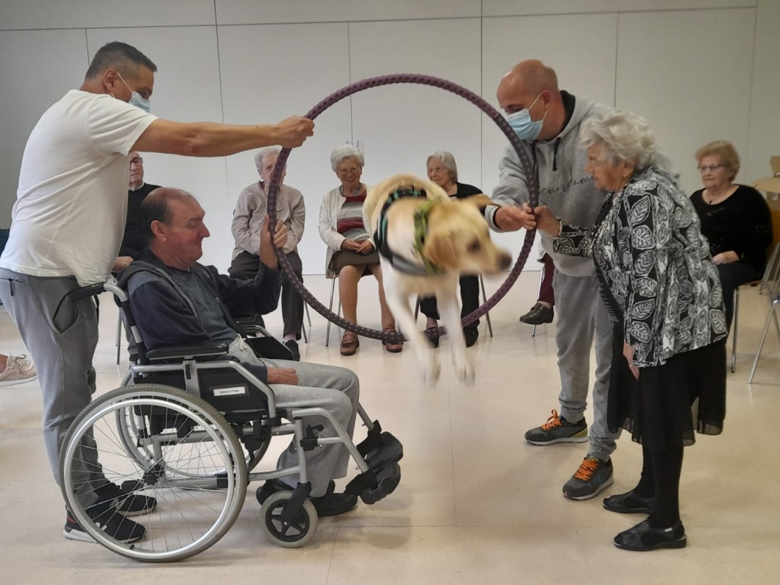 Avui ens acompanya en Boby, un gosset molt simpàtic. Ens deixa acariciar-lo, el veiem fer salts i diferents trucs. Ens agrada molt!