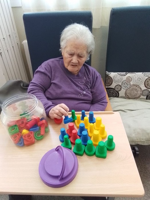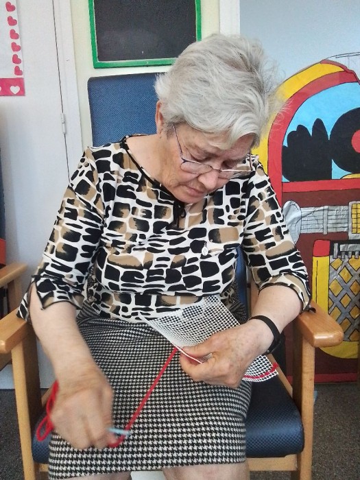 Pintando dibujos de primavera, ejercicios cognitivos y tejido.