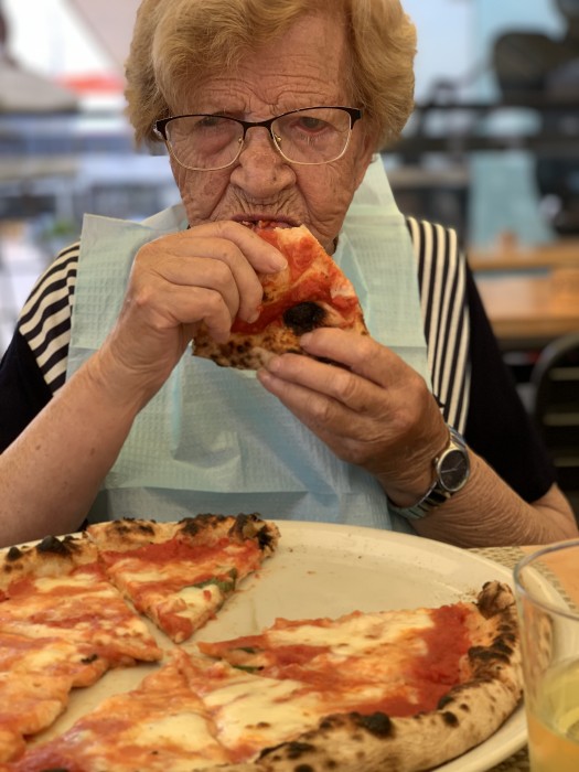 La Lluisa ha sigut l'àvia protagonista del mes de maig i una de les activitats que volia fer era sortir a dinar una pizza amb alguns dels seus companys !!