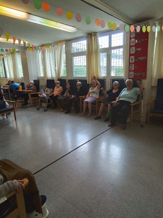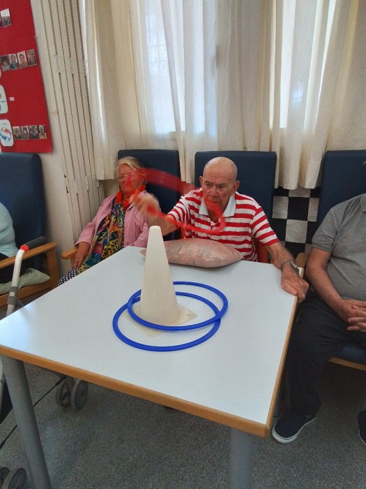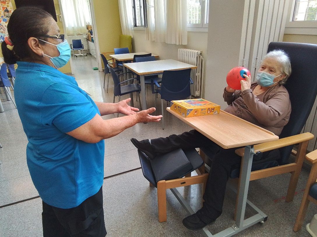 Los usuarios realizan ejercicios para mejorar coordinación, fuerza y movilidad.