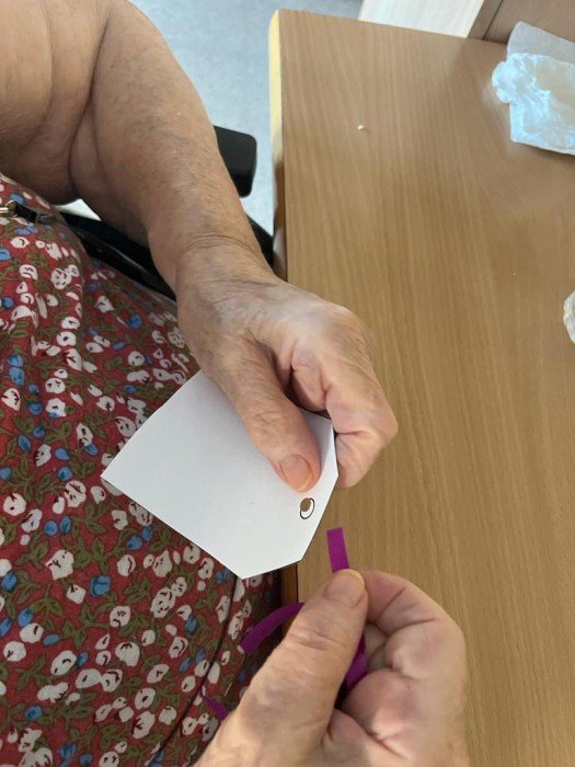 Motricitat fina creant les etiquetes perquè cada resident posi el seu desig.