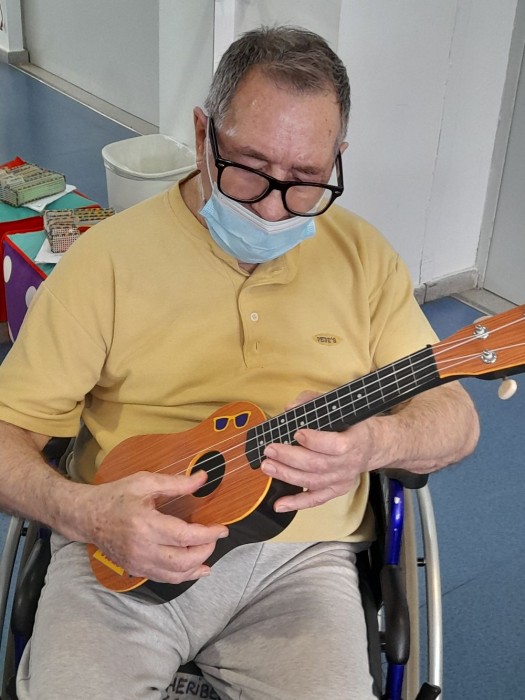 Moments de les últimes sessions de Musicoteràpia tocant un instrument nou:l'ukelele!