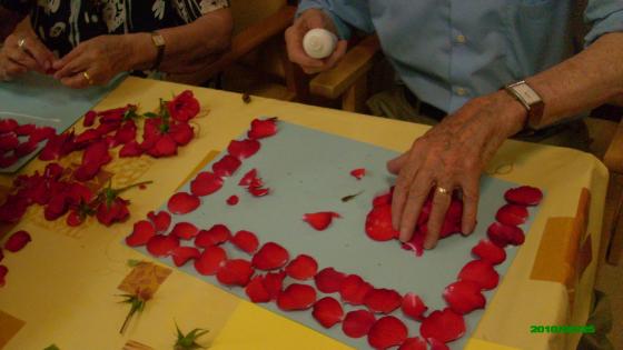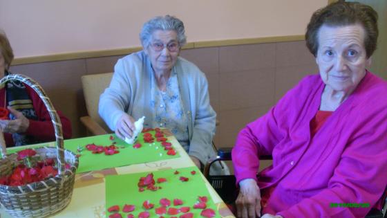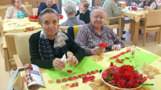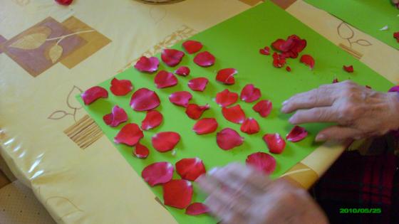 Aprofitant que tenim un jardí amb moltes roses vermelles, la setmana passada vam realitzar un taller on els avis enganxaven els pètals d'aquestes roses fent diferents dibuixos lliures a les cartulines. Els hi va agradar molt i van deixar lliure la seva creativitat. Visca la primavera!!!