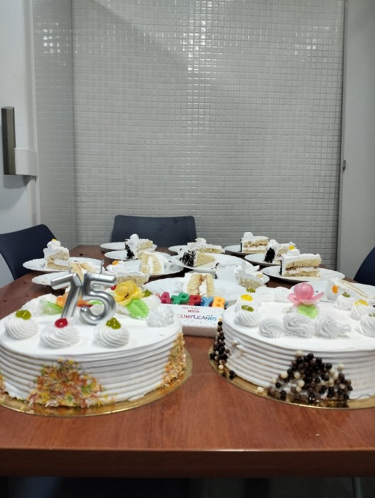 Avui la sra. CArmen fa 75 anys i ens ha convidat a un pastís deliciós!