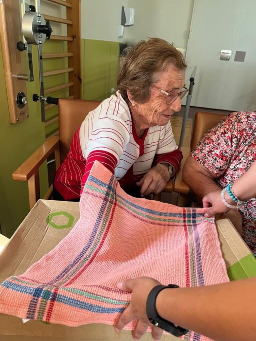 Un dels tallers més divertits és el d'estimulació sensorial. En aquest cas, vam treballar l'estimulació del tacte, on les persones usuàries havien d'identificar objectes dins d'una caixa i també haviem de discriminar-lo d'entre un grup d'objectes. Amb aquestes activitats, fomentem l'estimulació sensorial, però també l'estimulació cognitiva, la diversió i el treball en equip.