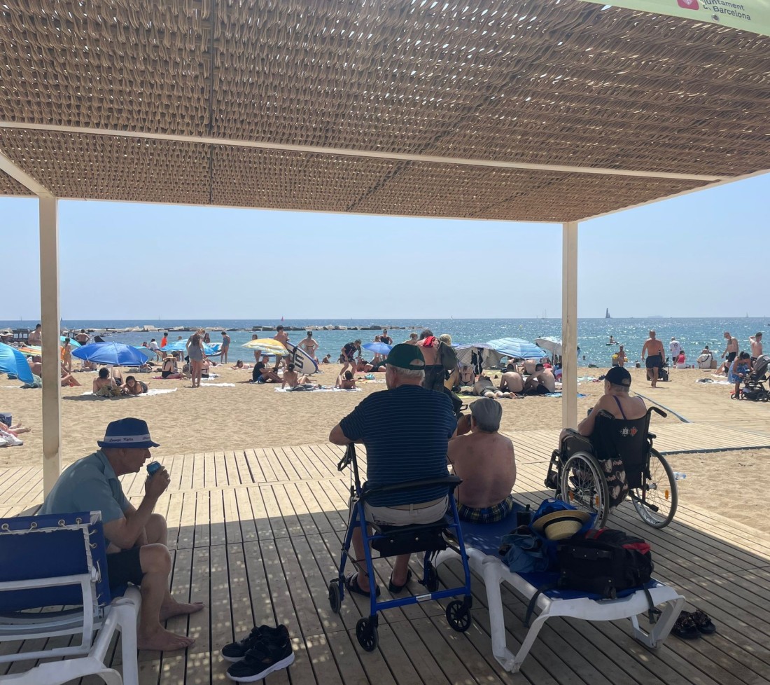 Avui hem passat una estona molt agradable a l'ombra d'aquesta pèrgola a la platja de sant miquel. No hem pogut banyar-nos, però encara així hem ficat els peus en l'aigua i gaudit molt de l'aire regenerador de la platja. Tornarem aviat!
