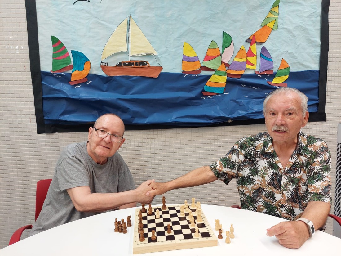 No sabem si és la obertura de Gambit de Dama o el Jaque del pastor... Però si sabem que en Jose Luís i el Francesc Xavier estan ben enfeinats escalfant-se el cap rumiant com poden derrocar el rei contrari.