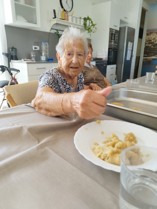 Aquest matí al Centre de Dia hem fet panoli per a berenar. Ens ha quedat boníssim, sobretot acompanyat de llet merengada!