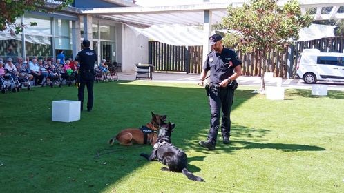 Avui hem rebut la visita de 2 gossos policíes de Vinaròs. Ha estat tot un espectacle comprovar com els entrenen i com troben la droga amb l'olfacte... Hem gaudit i ens ha agradat molt aquesta experiència.