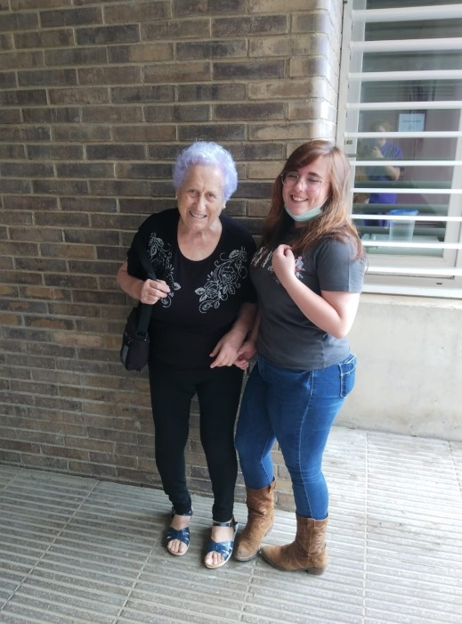 La señora Dolores de centro de dia recibió la visita especial de Ruth, una alumna del IES Pompeu Fabra con quien hizo acompañamiento el curso pasado. Se pusieron al dia, hicieron tertulia y pasearon por el jardín.