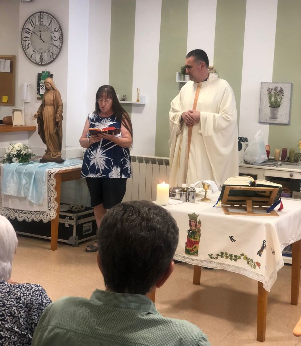 Fa uns dies, vam celebrar una missa especial a la residència: la Santa Missa, amb la verge Radio María.
