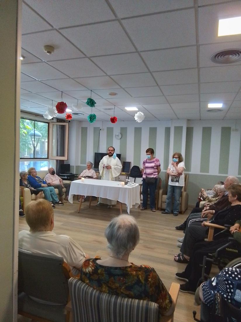 Cada dijous se celebra la nostra missa al centre de dia, tots els usuaris es reuneixen per rebre la missa del nostre mossèn de confiança.