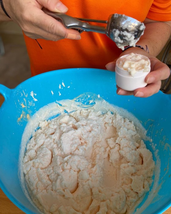 Vam deixar reposar el sabó tota la nit I avui l'hem ficat en potets individuals , gràcies Marina!!