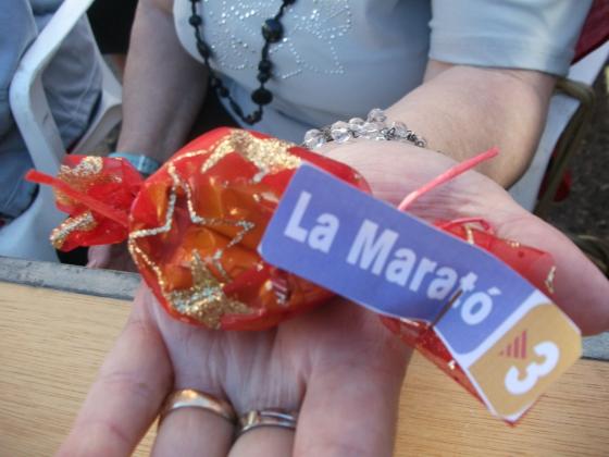 Avui, hem venut bombons al mercat per la Marató, dimarts vam fer els paquetets, els vam decorar i Au!! A vendre, realment, ha estat un éxit, en 45 minuts ja no en teniem cap, ne'm venut 140!!!! Estem molt contents de com van les ventes!!!!