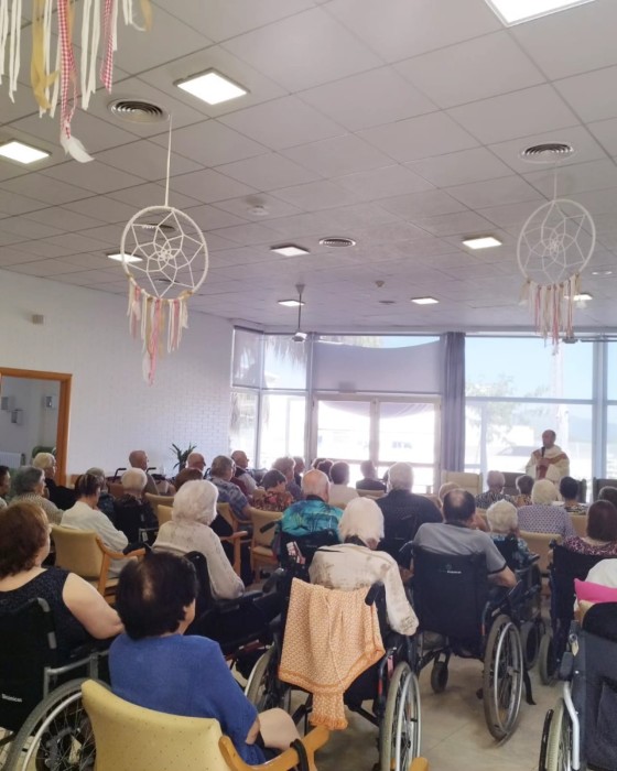 Ahir al matí vam fer la Missa mensual amb mossèn Joan de l'Església Sant Miquel. Aquest dia l'esperem en moltes ganes, la tradició i el sentiment religiós és present en la majoria de les nostres persones grans.