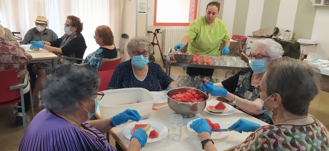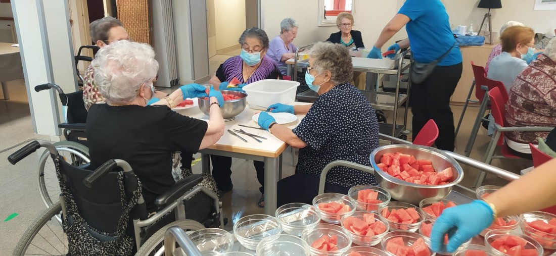 A casa nostra som molt fruiters... no perdem l'oportunitat d'ajuda a la cuina a fer bocinets de Síndria pels companys de la casa!