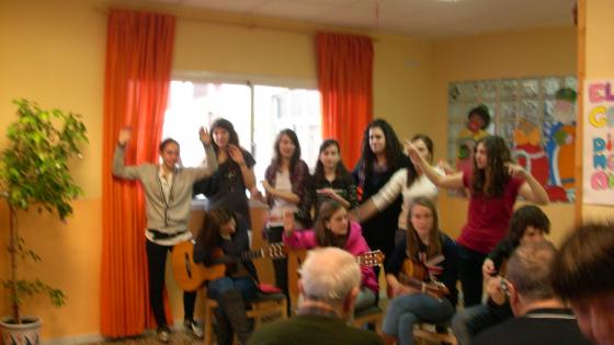 Avui ha sigut una diada molt especial. Hem tingut la visita de l'escola de les Teresianes. Alumnes de 12 i 13 anys ens han deleitat amb Nadales acompanyades del so de les guitarres espanyoles.AL finalitzar hem esmorçat tots plegats coca amb torró de xocolata. Han estat unes horetes molt agradables. Finalment ens han donat una felicitació feta pels alumnes.