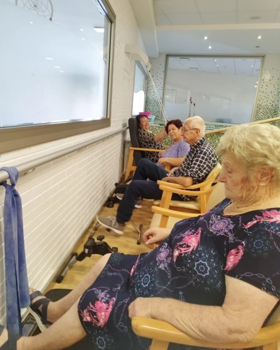 Des de bon matí i abans de la gimnàstica grupal, el Centre de Dia ha començat la jornada al gimnàs. Han realitzat un petit circuit per treballar tot el cos: equilibri i marxa amb obstacles, manteniment i força de les cames a través de les sentadilles, mobilitat i força de les extremitats superiors, resistència i força amb els pedals...