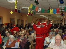A primera hora de la tarda vam arrencar la festa grossa. Vam començar fent cagar el tió, que ens va obsequiar amb molts regals a tots. Un cop els regals van estar repartits, vam començar amb un homenatge a aquelles avies que ajuden a les noies de neteja a tenir la roba en perfecte estat i ben etiquetada. Després vam rebre la visita d'un grup molt animat de Pares Noels, que ens van regalar caramels i bombons a tots els assistents! Continuarà...