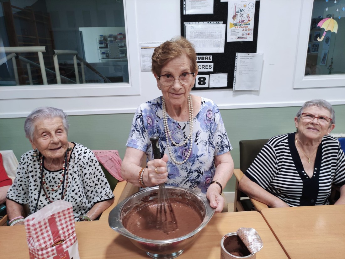 Hem realitzat un boníssim pastís de tres xocolates amb nous, que podrem degustar tots junts avui a la tarda per berenar.