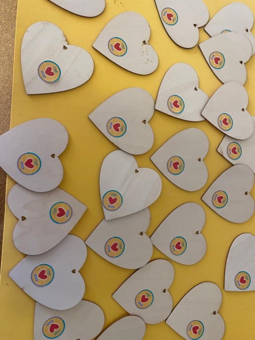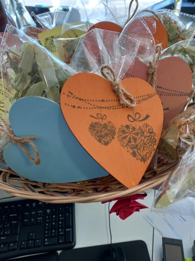 Pintem cors i omplim saquets de til.la collida al nostre jardí, per col.laborar un any més amb la marató.