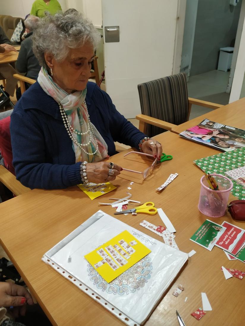 Comencem a dissenyar les postals de Nadal! Passem una estona divertida pensant i creant les diverses postals. Anem bé de temps per poder-les presentar al concurs! També pintem mandales nadalencs! Les residents estan molt contentes de poder continuar amb el concurs un any més!!