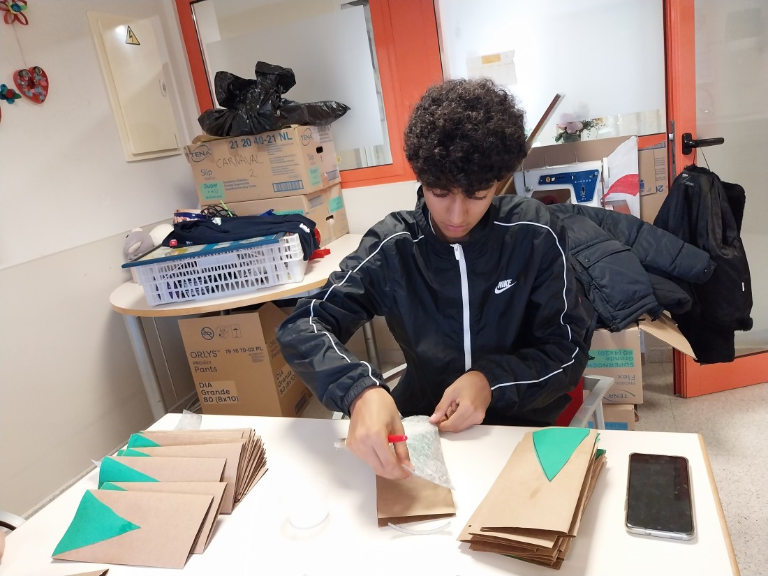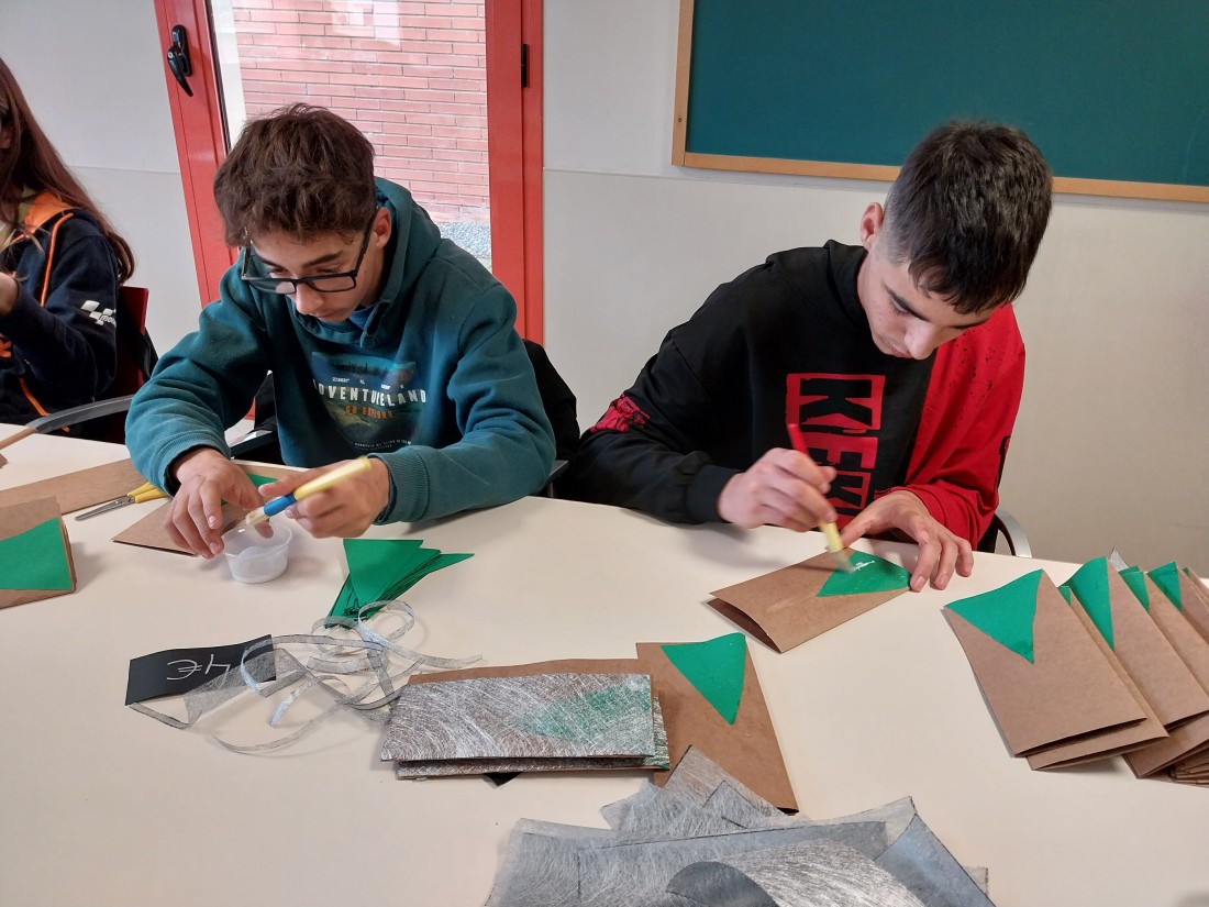 Avui han vingut els alumnes de la UEC de Les Borges a ajudar-nos a fer manualitats per les festes de Nadal i per La Marató! Moltes gràcies a tots!