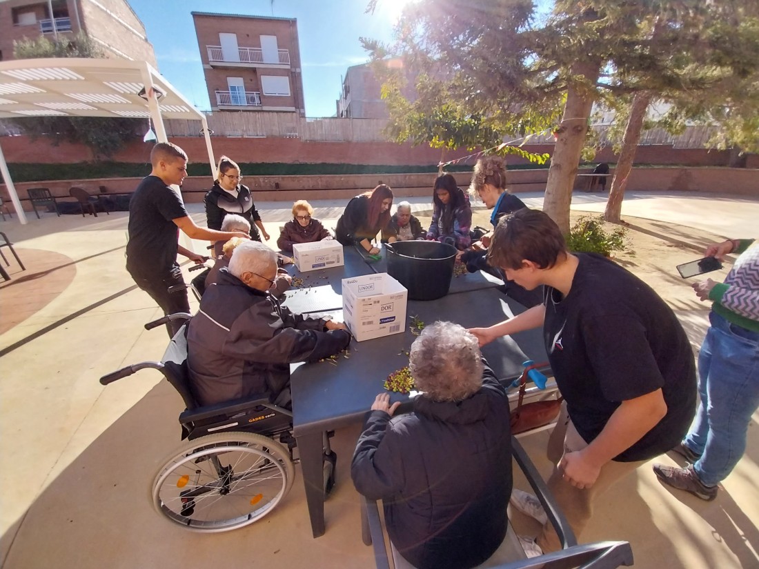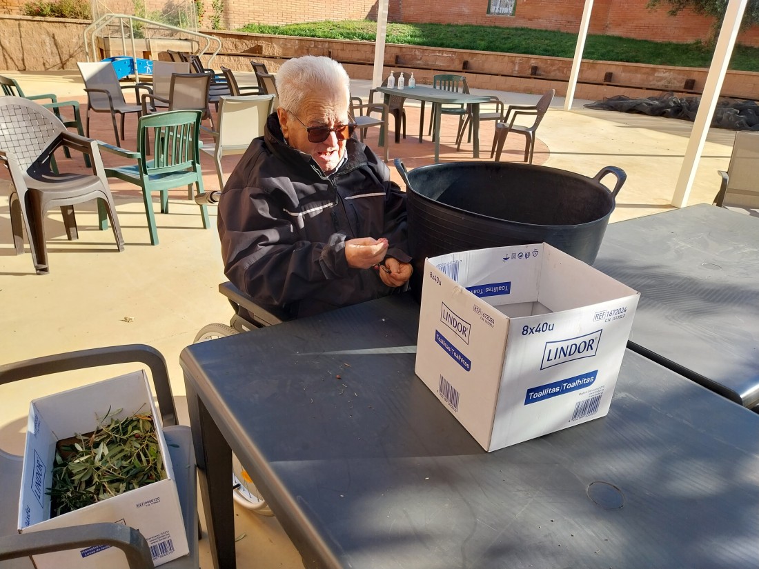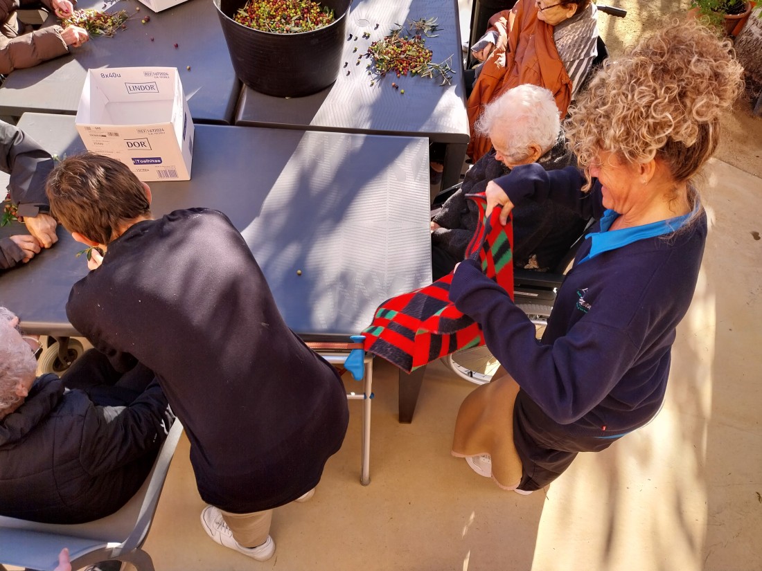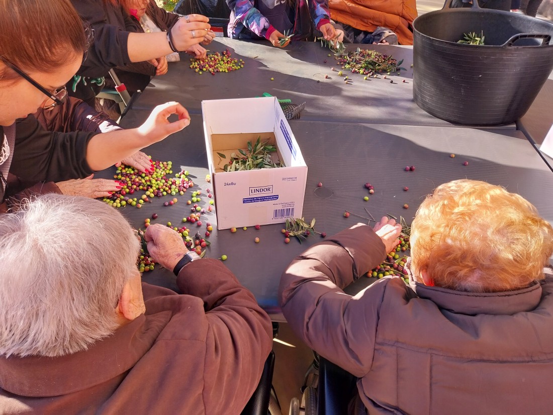 Desprès de collir les olives, toca separar l'oliva de les fulles que han caigut... i així ho vam fer!