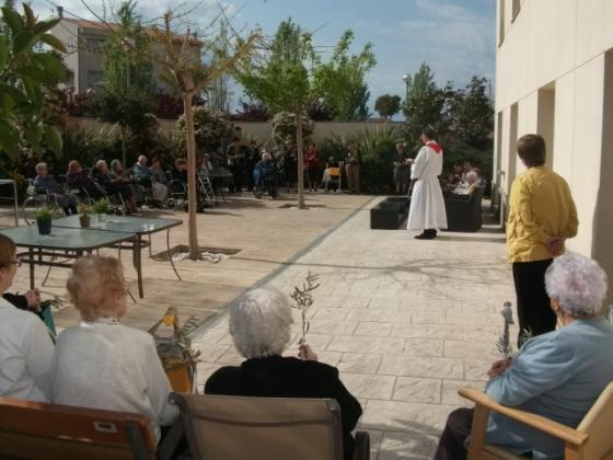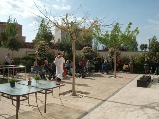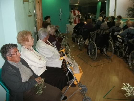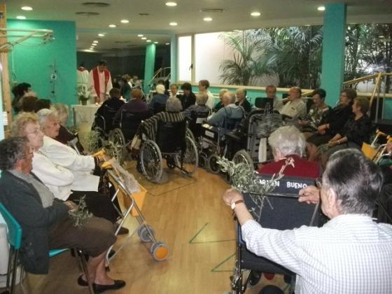 Aquest divendres, a l'Onada de la Ràpita em adelantat la celebració del diumenge de Rams. Els nostres residents han assistit al jardí a la benedicció, per part de mossen Carlos, dels ramets d'olivera que cadascun portava. Seguidament s'ha celebrat una misa en el gimnàs amb molta assitència