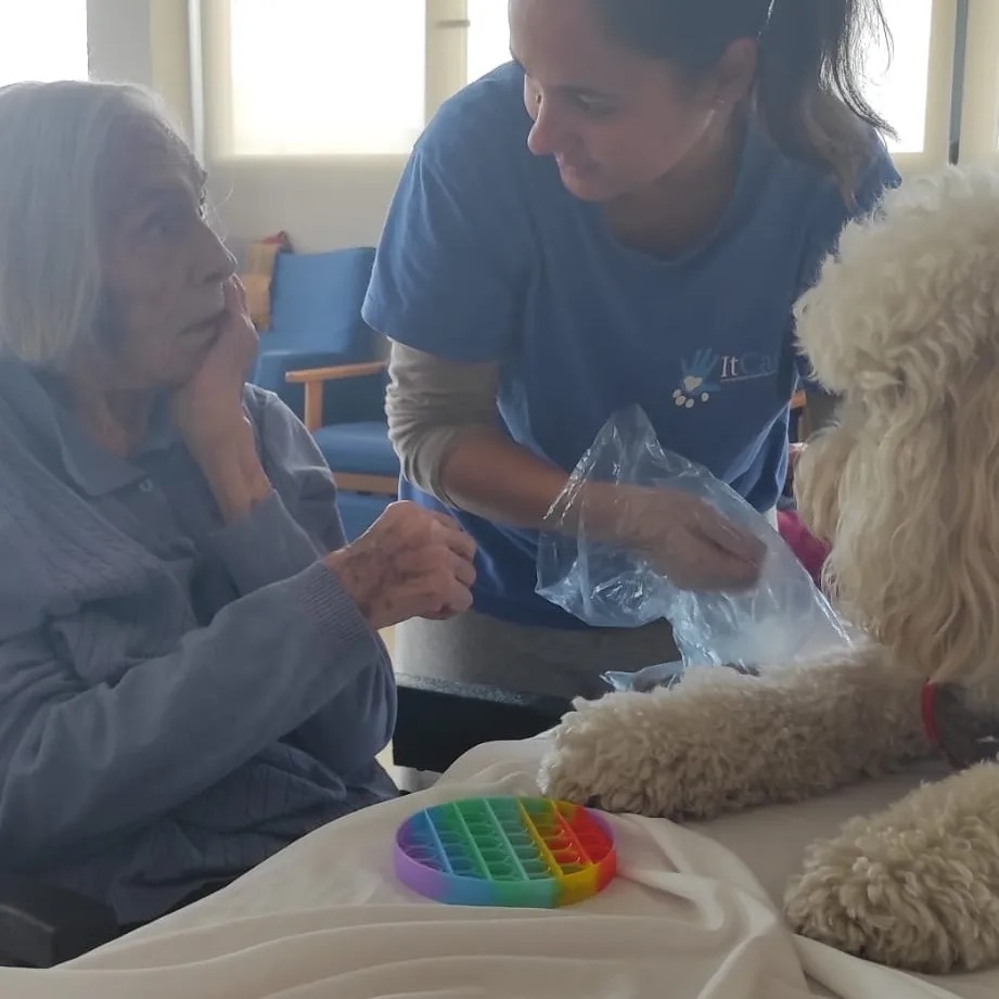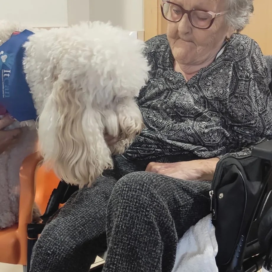 Les residents treballen les emocions, la responsabilitat, l'empatia, la comunicació i el reforç positiu a través del contacte físic amb la gossa Iris.