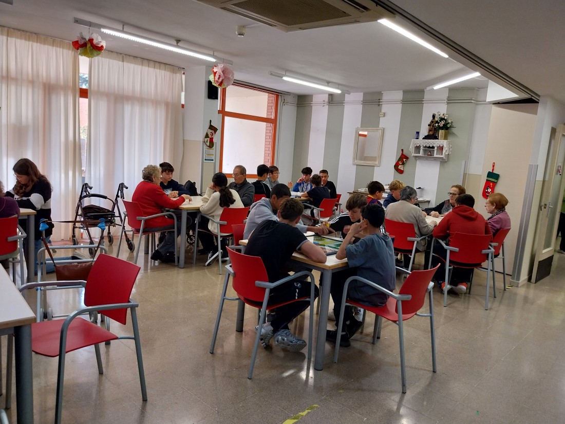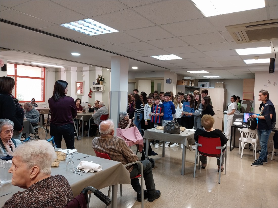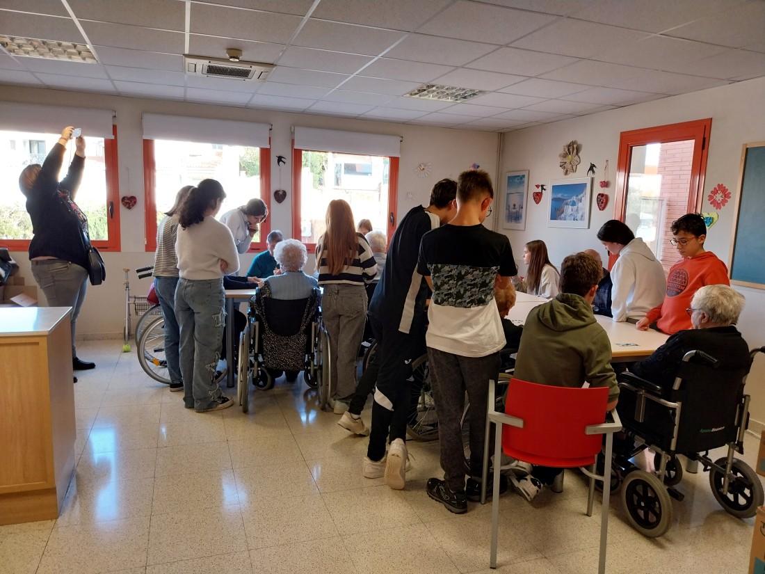 Avui hem tingut una visita molt especial! I es que en hn vingut a desitjar Bones Festes els i les alumnes de 2n de la ESO del Col·legi Mare de Déu de Montserrat! Amb ells hem jugat a jocs de taula i ens ajudat a decorar la casa! Hem gaudit molt també de les nadales que ells mateixos han composat! No podíem estar més contents!!