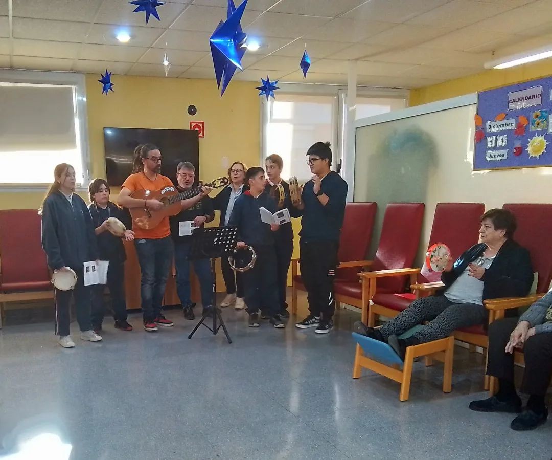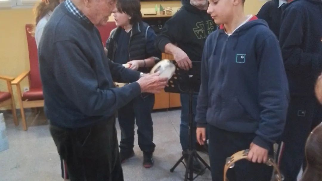 Hoy han venido los niños de el colegio sant Gabriel a cantar con nosotros villancicos