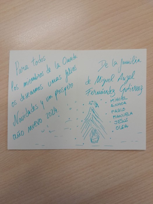 Com tots els anys, son moltes les famílies que ens desitjant bones festes I porten lots per repartir. Aquesta felicitació de la familia de Miguel A. ens ha agrat molt. Bones festes ONADA