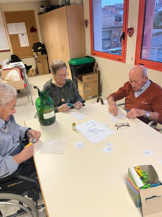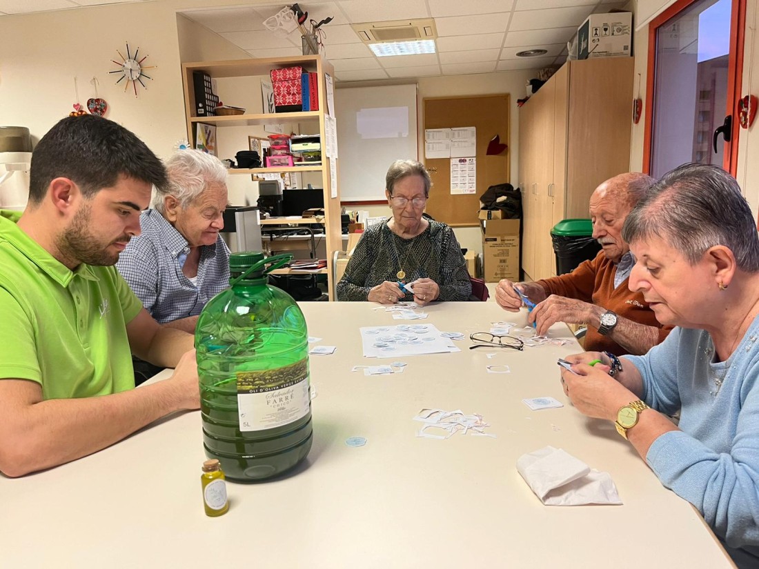 En aquestes fotos podeu veure una altra part del procés de les botelletes d'oli d'oliva de la casa! Aquí ajudàvem al Jordi a retallar les etiquetes!