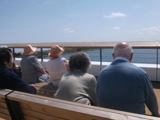 Hem anat a veure el pont de Sant Jaume i Deltebre, molts avis ens han recoirdat les peripecies que havien de fer per creuar el pont, a vegades en barcassa, nadant, amb llaut, amb barqueta... s'han emocionat al veure els grans canvis que estava tenint els seus pobles, a més de fer turisme, hem fet molt exercici ja que la rampa era molt empinada, mireu que cansatdes s'han quedat algunes... La recompensa??? Una beguda fresqueta a la voreta del riu!!!